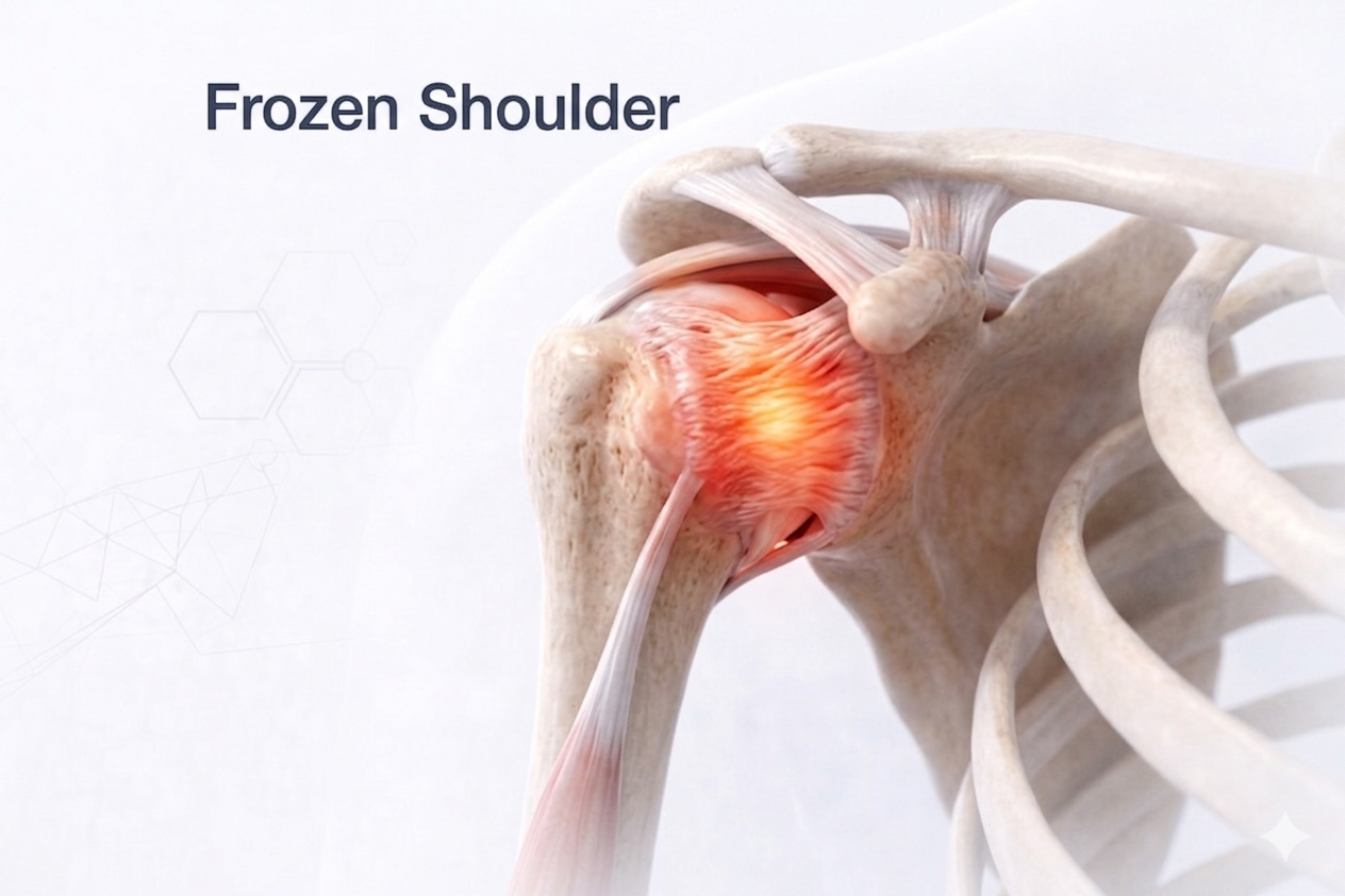 Frozen Shoulder, medically known as Adhesive Capsulitis, is a painful and progressively stiffening condition of the shoulder joint.It occurs when the capsule (a thin tissue covering the shoulder joint) becomes inflamed, thickened, and tight — leading to restricted motion in all directions.