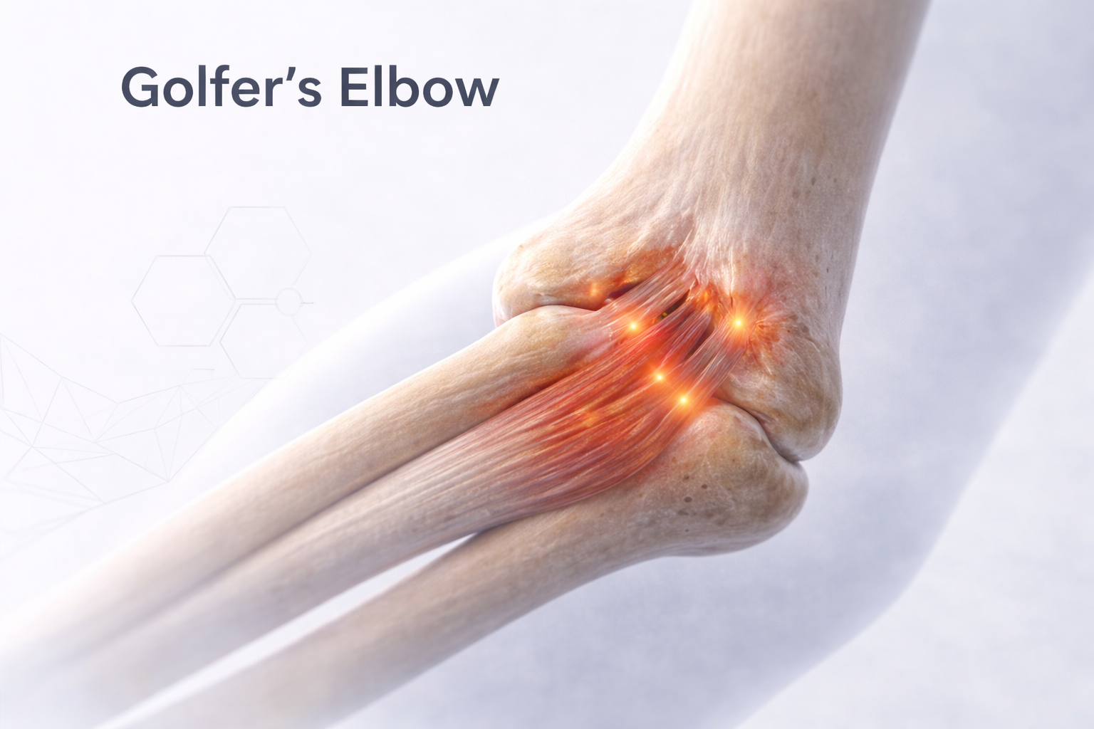 Golfer’s Elbow, or Medial Epicondylitis, is a painful condition that occurs due to inflammation or degeneration of the tendons that attach to the inner (medial) side of the elbow.
